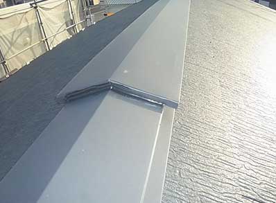 棟板金とは屋根の頂点にある板金の事です。屋根の内部への雨水の侵入を防ぐ役割があります。