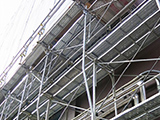 外壁の上部は高所作業になるため、お家の周りに足場を設置します。